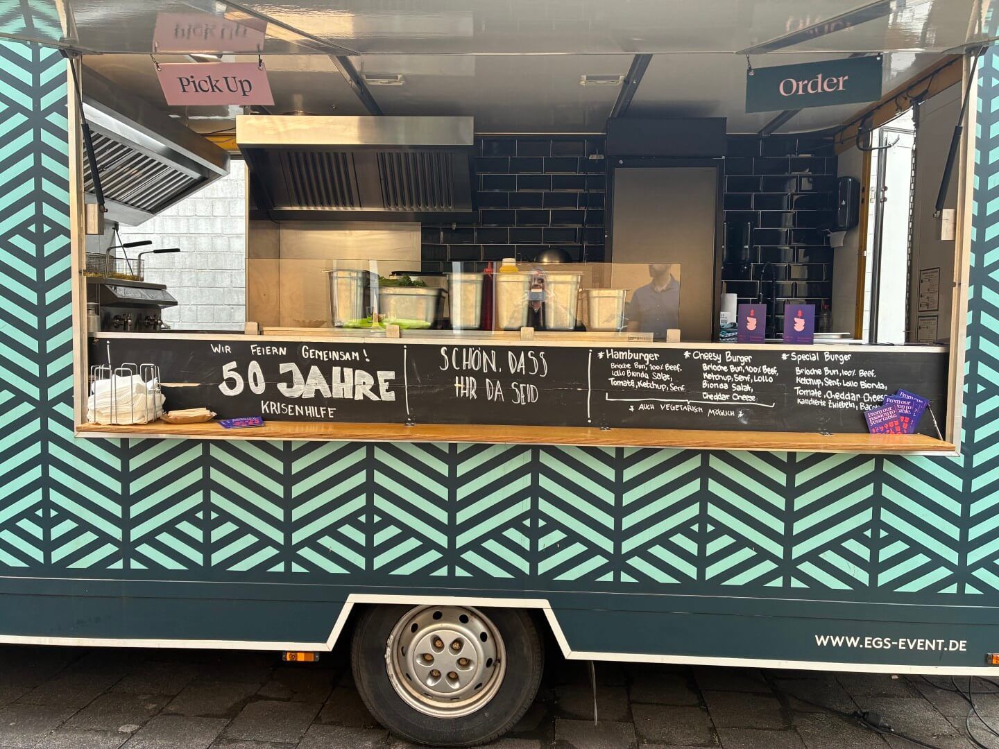 In entspannter Atmosphäre kamen wir auf dem Gelände des Standortes Katharinastraße zusammen. Für das leibliche Wohl sorgte ein beliebter Burgerstand, der mit frisch zubereiteten Köstlichkeiten für Begeisterung sorgte. Ein besonderes Highlight war unser Jubiläums-Quiz „50 Jahre Krisenhilfe“, bei dem Wissen, Erinnerungen und Anekdoten aus fünf Jahrzehnten gefragt waren – mit viel Spaß und einigen Überraschungen. Zum Abschied erhielt jede*r Gast eine Umhängetasche mit dem Aufdruck „50 Jahre Krisenhilfe“ – gefüllt mit einem Notizblock und einem Stift. Ein kleines Dankeschön und eine schöne Erinnerung an diesen besonderen Tag.