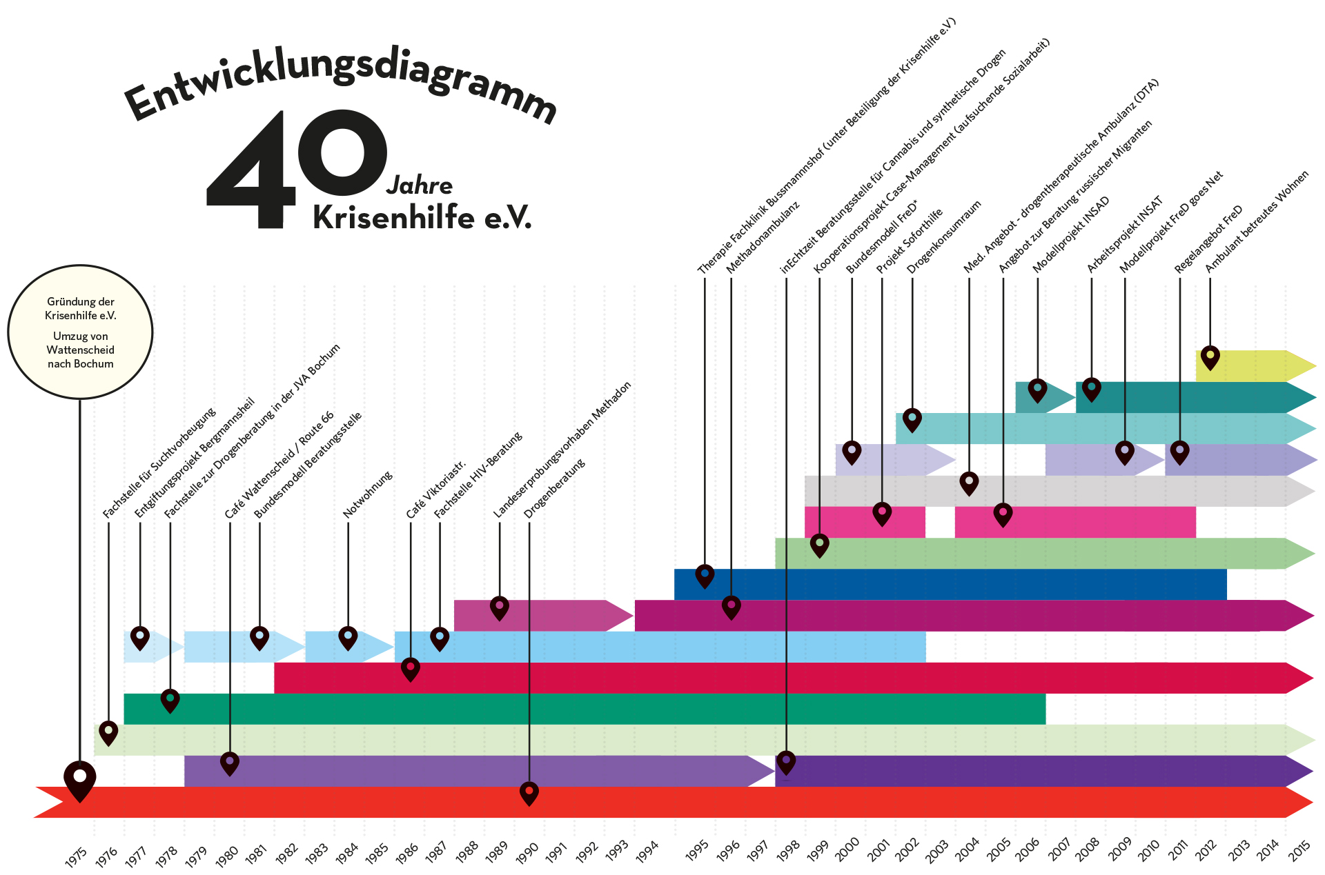 Im Spannungsfeld zwischen Verbot und Kriminalisierung illegaler Drogen einerseits und persönlichem Unterstützungsbedarf von Betroffenen andererseits wurde 1975 der Verein Krisenhilfe von engagierten Bochumer Bürger_innen gegründet. Vor dem Hintergrund sich verändernder gesellschaftlicher Verhältnisse und Problemlagen differenziert der Verein seine Angebote fortlaufend aus.
